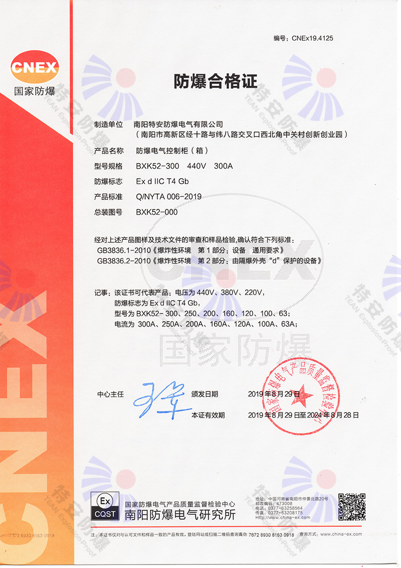 防爆電氣控制箱IIB  中國國家強(qiáng)制性認(rèn)證證書(3C證書)