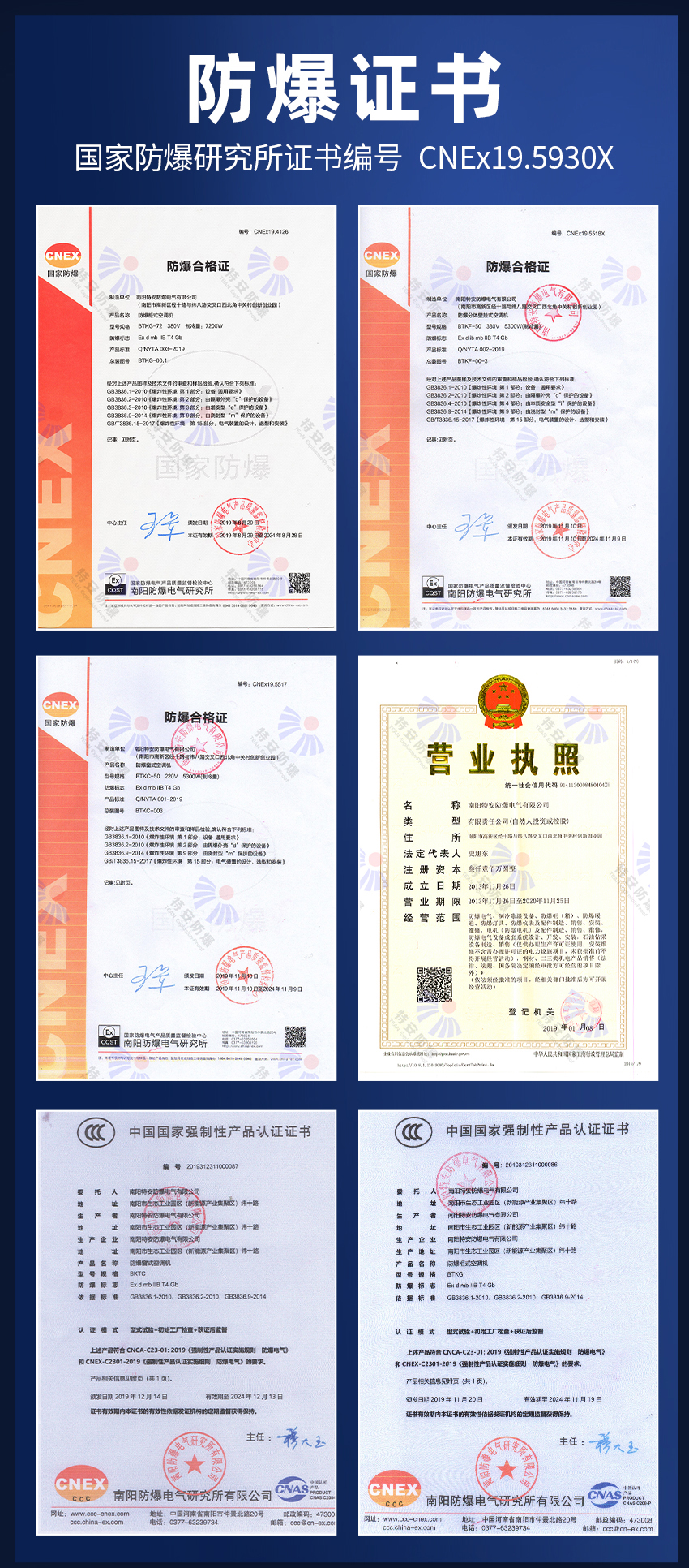 我們的防爆空調(diào)取得防爆研究所CNEX防爆合格證,證書編號為CNEX16.2200 ◆ 適用于爆炸性氣體環(huán)境1區(qū)、2區(qū);